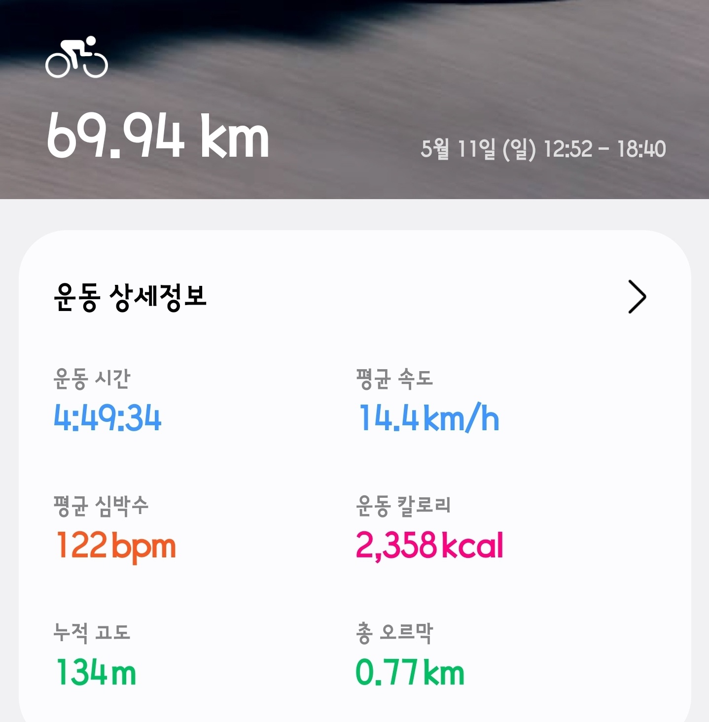 - 자전거 싸이클 69.94km ( 2358kcal)