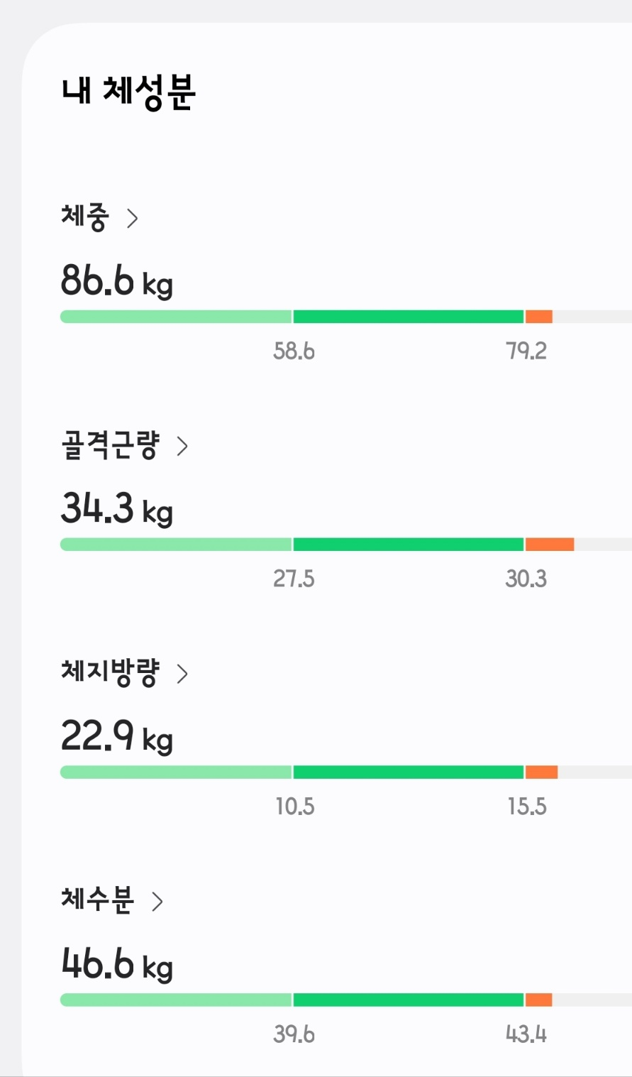| 체중 | 86.2 | 86.6 | +0.4 | 93.1 | -6.5 |