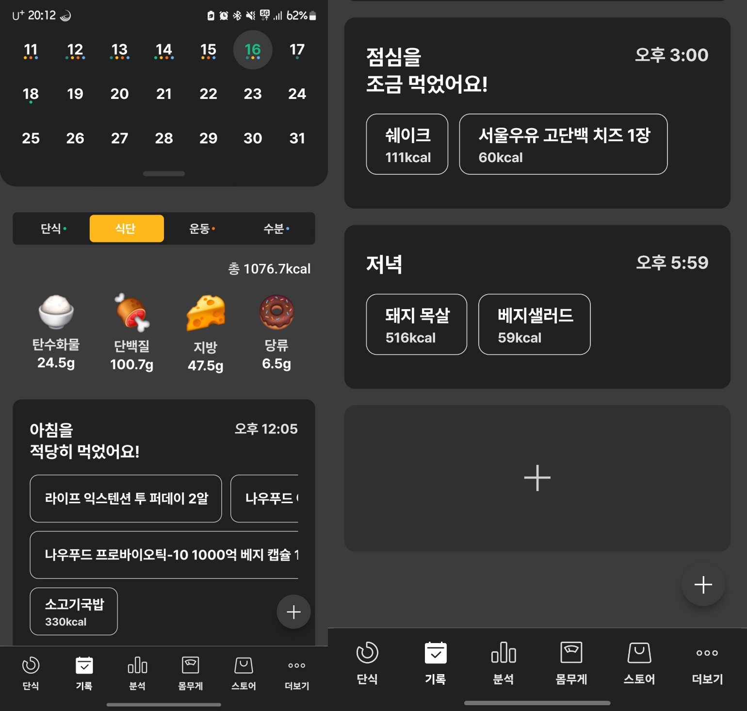 12~18일차 단백질 쉐이크 섭취 3회+점심+2회 단식 (이전 단식과 이어지지 않게)