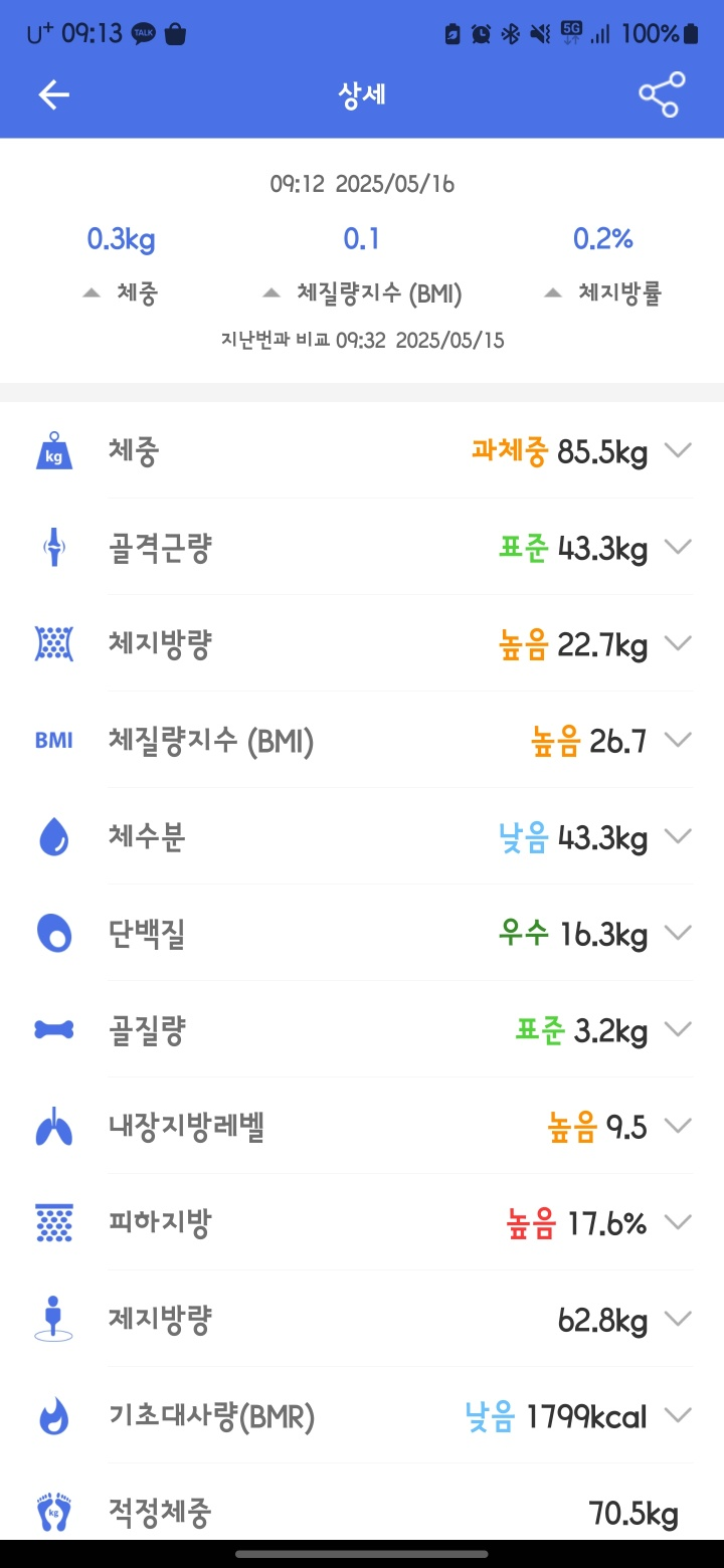 사진은 위에서 부터 시작일 1주차 2주차이다. 촬영과 허리둘레 측정시 배에 힘주지 않고 최대한 내민 상태로 찍었다. 피부 진짜 너무 하얀데.. 몸 좋아지면 태닝 고민해야겠다. 워치상태가 좋지 않아서 체중계 값으로 체성분을 측정을 진행한다. 탄수화물이 강했다. 낮에 쉐이크를 먹을 때 단게 너무 먹고 싶더라 절반이나 온만큼 절반만 더 철저히 진행해봐야겠다.