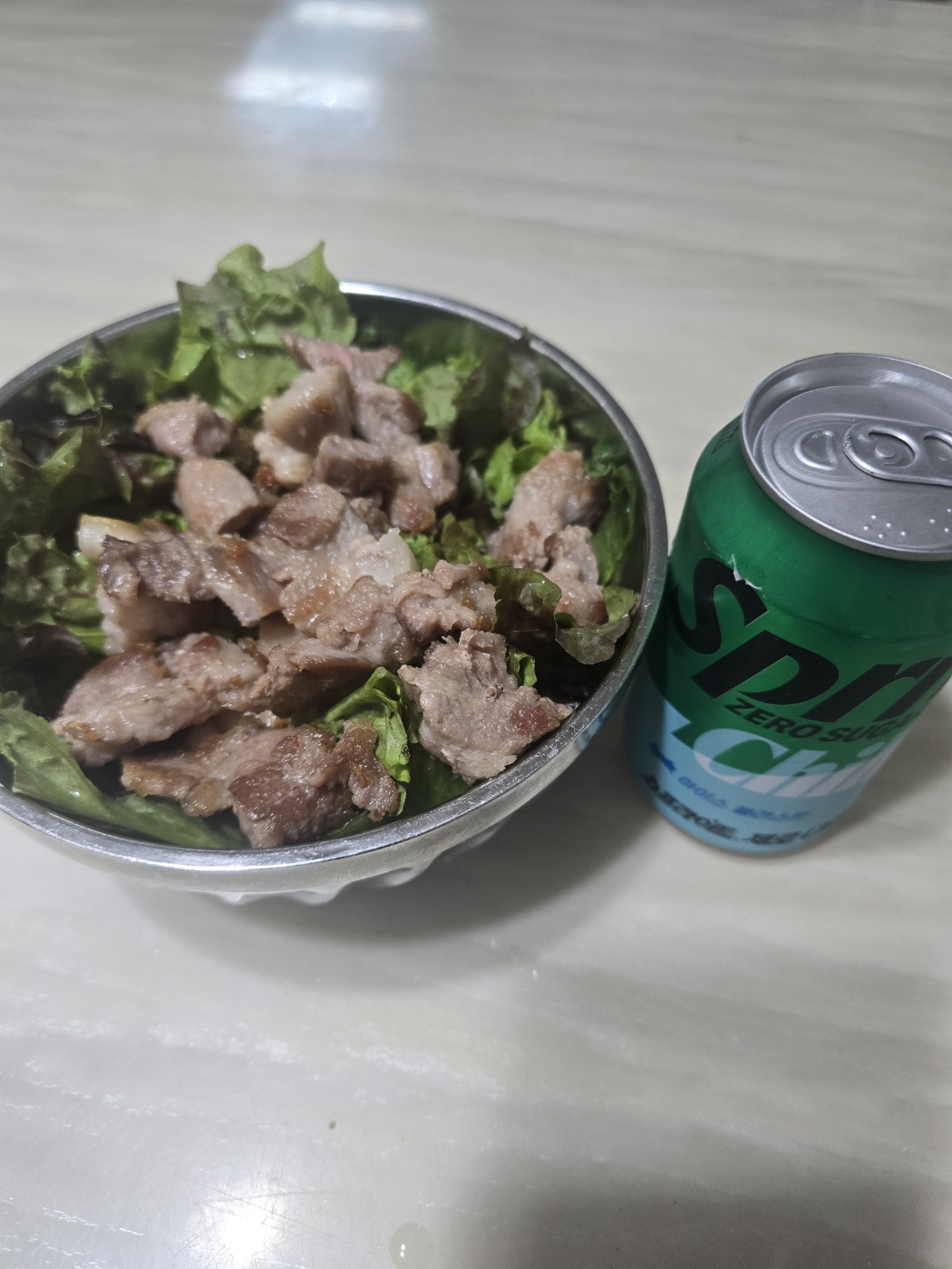 📌 섭취 칼로리 / 영양소 : 1076kcal / 탄수24.5 단백질100.7 지방47.5 당류 6.5 아침에 아빠와 새로생긴 국밥집을 갔다. 소고기 국밥이지만 너무 별로다. 고기는 뻣뻣하고, 국물을 당귀 감초를 넣었는지 단맛이 강하다. 밥도 푸석해서 먹기가 싫더라 어제 너무 맛있었는지 오늘이 너무 차이났다. 간식으로 쉐이크랑 치즈를 먹었다. 저녁은 쉐이크로 먹어야했으나 너무 달아서 샐러드로 변경했다. 본래 스위치온다이어트가 2주차부터 1회 일반식 1회 저탄수식이 맞으나 내맘대로 변경한 것이다. 알룰로스나 수크랄로스가 단맛은 엄청 많이 남는다. 먹고 즉각적인 양치가 필요하다.
