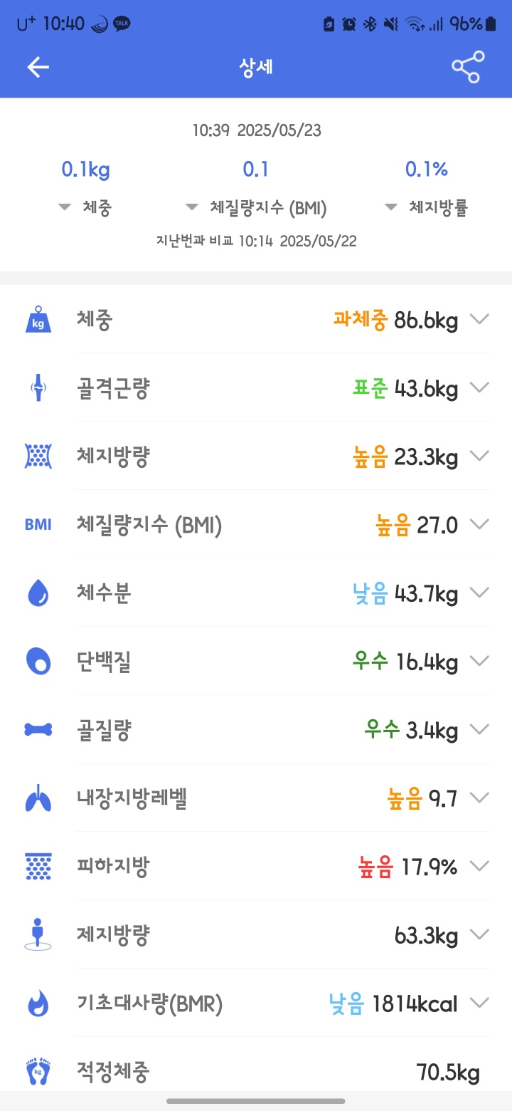 활동량이 늘어나고 탄수화물이 늘어나니 동일한 체중과 체성분이 나왔다. 이 뜻은 내 기초대사량의 적정 섭취 칼로리는 1500kcal 근처에 가까운 것 같다. 선형적으로 소모되었다고 가정했던 300g보다 미미하지만 감량은 존재하는 것을 확인할 수 있었다. 지금까지 적정 탄수화물은 50g정도가 적당한 것 같다. 오늘은 탄수화물과 당을 폭력적으로 때려넣은 하루였다.. 심신 미약상태를 겪다보니 물도 먹고 싶지 않았다. 주말까지만 버티고 진행해봐야겠다.
