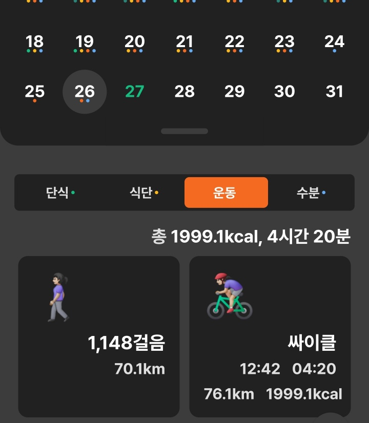 19~25일차 일반식 치팅주간 (단 설밀나튀술은 금지) 밀가루는 최대한 섭취를 자제하고 먹게 되면 활동량으로 보조